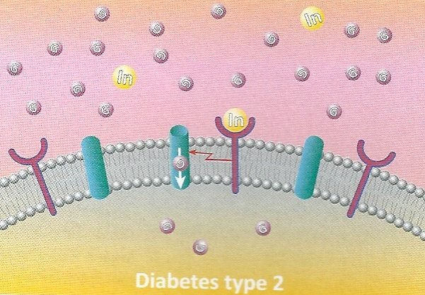 Bij diabetes type 2 kan het lichaam de bloedsuikerspiegel niet meer goed regelen, doordat er te weinig insuline in het lichaam aanwezig is en de insulinereceptoren op de lichaamscellen minder gevoelig zijn voor de insuline. Wanneer de insulinereceptoren op de lichaamscellen minder gevoelig zijn voor insuline, wordt dit insulineresistentie genoemd. Hierdoor zit er minder insuline in het bloed, waardoor de glucose minder efficiƫnt in de lichaamscellen terecht kan komen. het lichaam is ongevoelig voor insuline. Dit noemt men ook wel insulineresistentie.